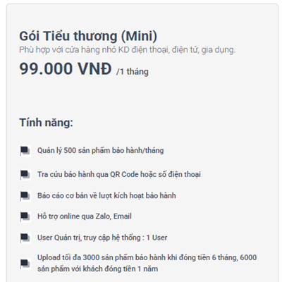 Gói phần mềm bảo hành điện tử cho tiểu thương không chỉ có giá phù hợp mà còn tích hợp nhiều tính năng mạnh mẽ: quản lý khách hàng, nhắc bảo hành tự động, lưu trữ dữ liệu an toàn. Đây là cách để cửa hàng nhỏ bắt kịp thời đại công nghệ mà không tốn kém.